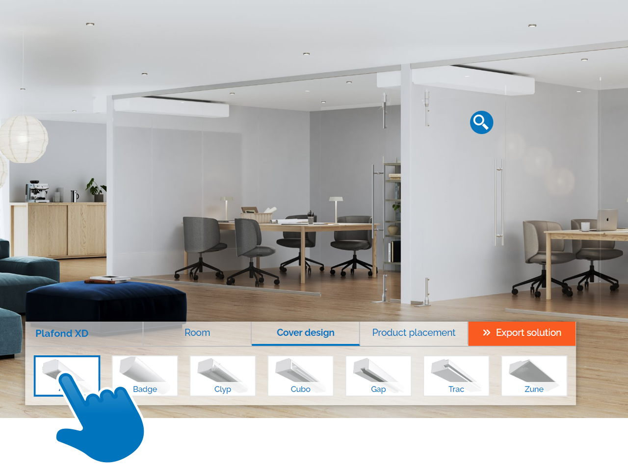 On palju võimalusi kuhu ja kuidas paigutada Plafond XD aktiivpalk. Seitse unikaalse disainiga katteplaati annava nüüd veelgi rohkem valikuvõimalusi paigaldada Plafond XD nii, et see sobib täpselt sinu sisekujundusstiiliga. Pole lihtsalt paremat viisi Plafond XD katete esitlemiseks kui interaktiivse disainiga ekraan.