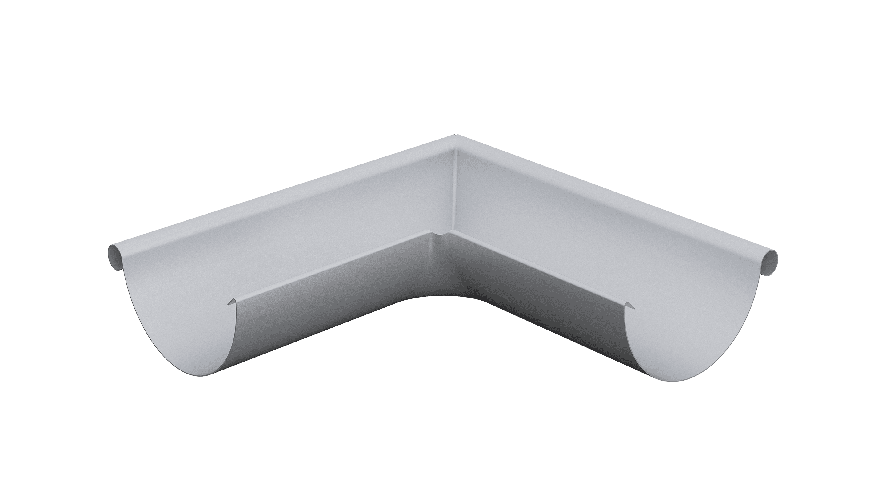Renni sisenurk poolümmargusele rennile 90 kraadi. Toode on pressitud ühes tükis, mitte kokku keevitatud, mis välistab lekkimise riski. Valmistatud pinnakattega alumiiniumist paksusega 0,6 mm.
