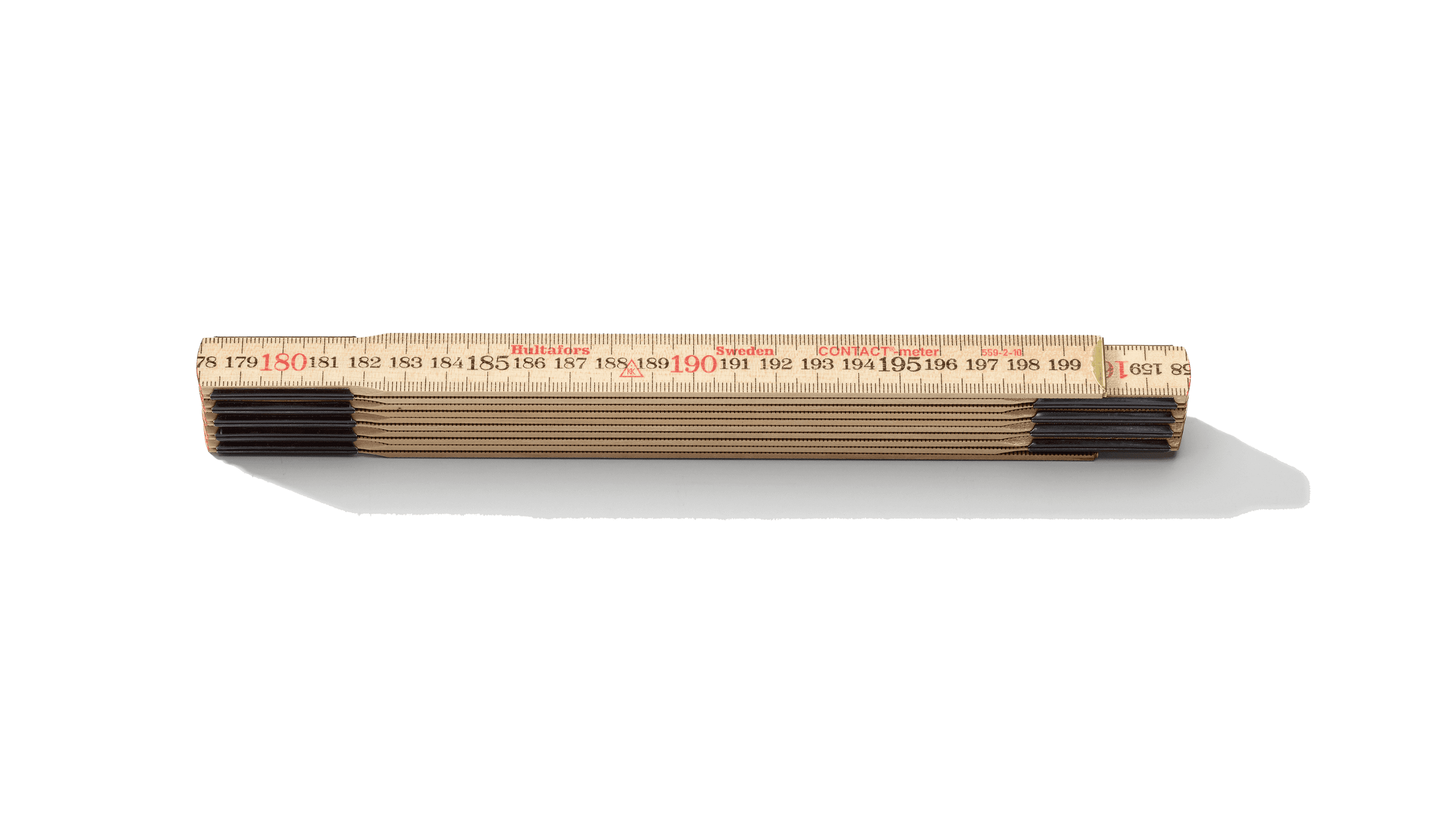 Mõlemal küljel must meetermõõdustik punaste detsimeetrinumbritega. Kasutatakse mõõtmiseks otse aluspinna vastu. Lakitud vesialuselise lakiga et suurendada vastupidavust mustusele ja niiskusele. Vuugid on kuumtöödeldud, kaitsva lakiga ja kolmest punktist õlitatud, et tagada esmaklassiline jõudlus.